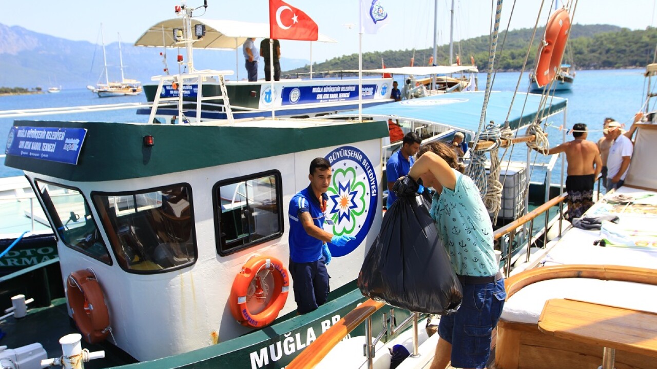 Muğla Büyükşehir Belediyesi atık alım tekneleriyle bayram tatili süresince denizlerden atık toplaya devam etti.
