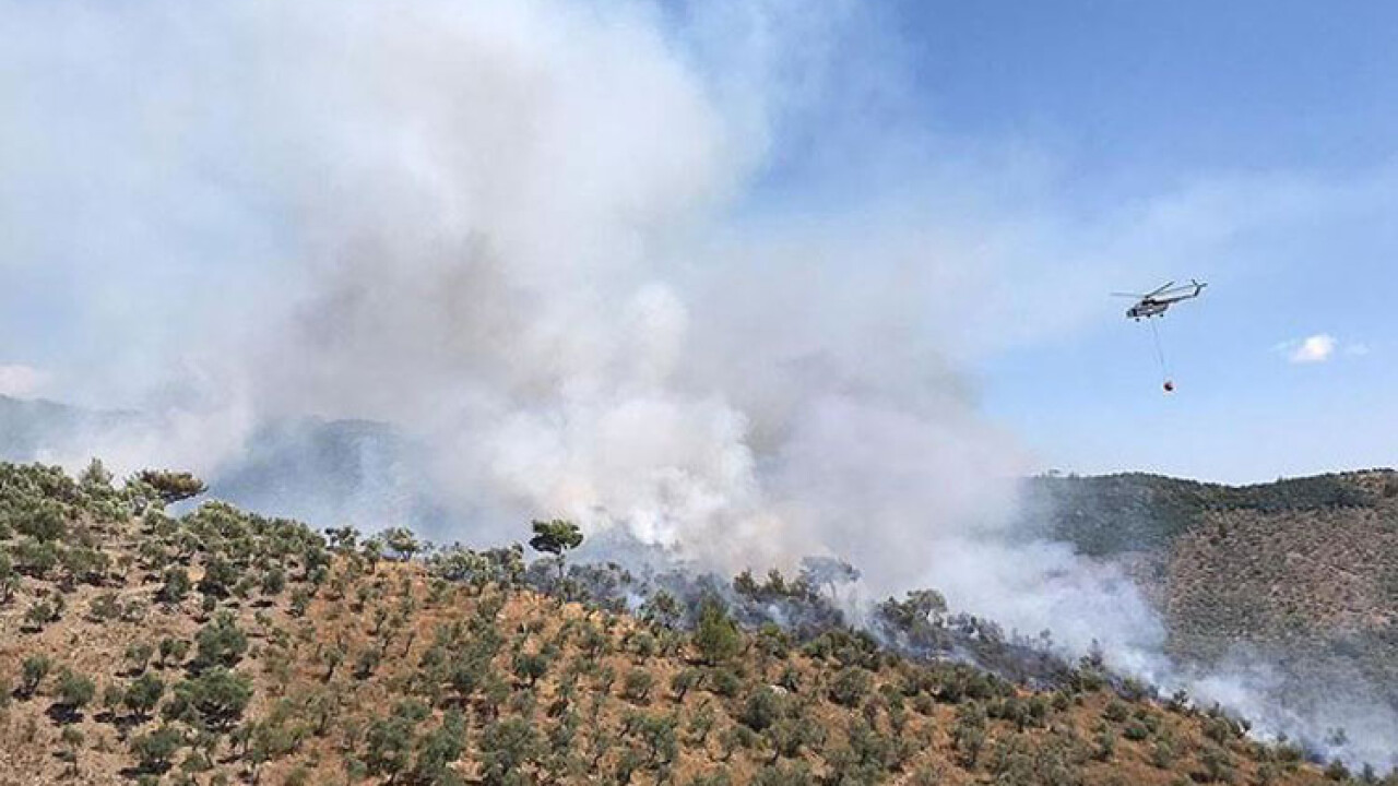 Muğla'nın Milas ilçesinde çıkan orman yangınına müdahale ediliyor.
