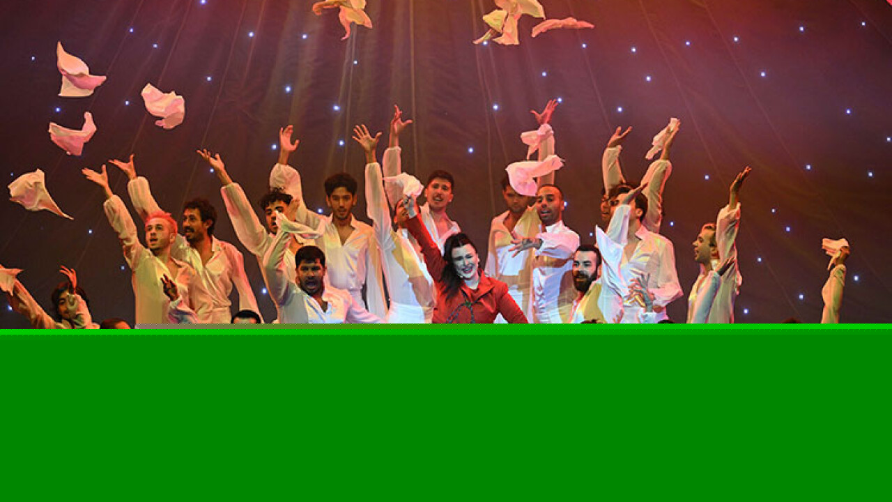 Gösteri, 180 metrelik kumaş kullanılarak hazırlanan dev bir etek giyen dansçının sahnede görünmesiyle başladı. Geceye özel hazırlanan mekanizmayla dansçının sahnenin tavanına yükselmesiyle eteğinin altından çıkan Yasemin Sakallıoğlu ve 26 kişilik dans ekibi, 'Düm Tek Tek' şarkısıyla şovu başlattı. "Çok mutluyum... Üçüncü Harbiye sahnemiz ve yine biletleri bitirdik. Sizinle gurur duyuyorum" diyen Sakallıoğlu, Tayfun Kaba imzalı kırmızı takımıyla çok şıktı.
