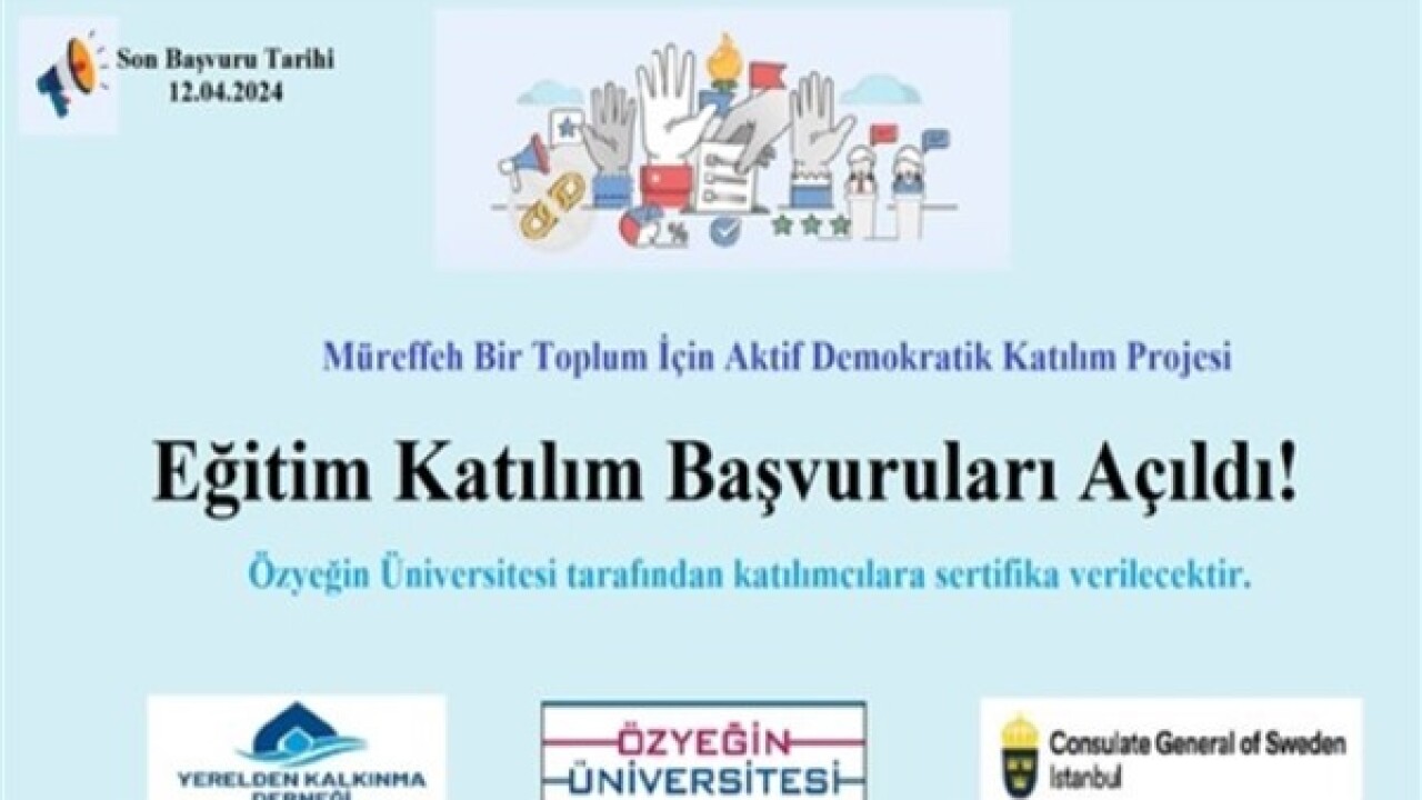 İsveç İstanbul Başkonsolosluğu’nun 2024 Yılı Projeler İçin Başvuru Çağrısı çerçevesinde Yerelden Kalkınma Derneği tarafından yürütülen ‘Müreffeh Bir Toplum İçin Aktif Demokratik Katılım Projesi’ Projesi kapsamında çevrimiçi olarak gerçekleştirilecek.