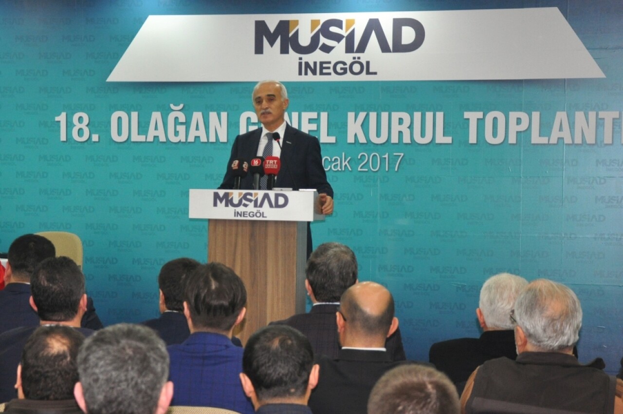 MÜSİAD İnegöl Şubesinin 18. Olağan Genel Kurul toplantısı dernek merkezinde gerçekleştirildi. Genel Başkan Nail Olpak’ın da katıldığı kongrede mevcut Başkan Halil Malkaç güven tazeledi. Genel kurulda konuşan Genel Başkan Nail Olpak, “Bu zor zamanlarda işadamları olarak, ayrıca bir sorumluluk taşıyoruz. Bu sorumluluk; her ne olursa olsun, direnmeye, üretmeye ve büyümeye devam etmektir. Gerçek başarılar, koşullar sayesinde değil, koşullara rağmen kazanılır. MÜSİAD olarak, daima bu çizgide hareket ettik. Her faaliyetimizde, bu söylemi eyleme dönüştürdük” dedi.