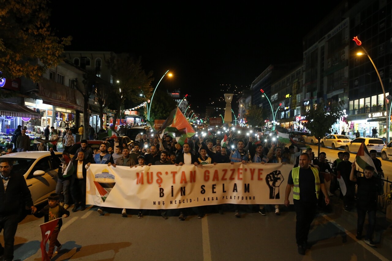 Kentteki sivil toplum kuruluşu temsilcilerinden oluşan Muş Mescid-i Aksa Platformu tarafından Kent Meydanı'nda düzenlenen program, Kur'an-ı Kerim tilavetiyle başladı.