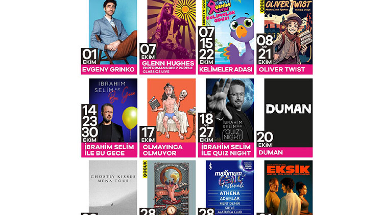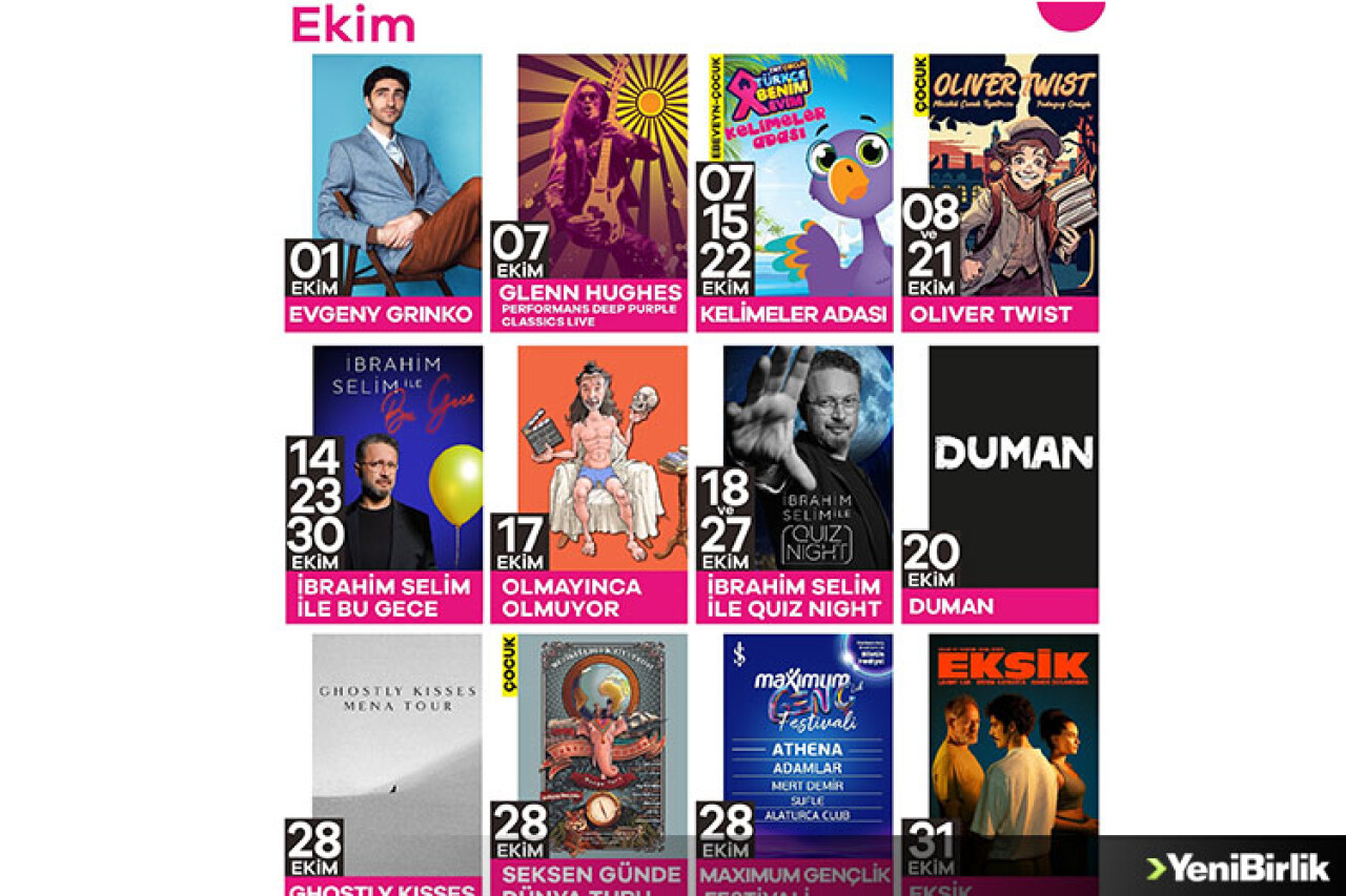 Mekan, Ekim ayında dünyaca ünlü müzisyenlerin konserlerine, tiyatro oyunlarına, çocuk etkinliklerine ve festivallere ev sahipliği yapacak.