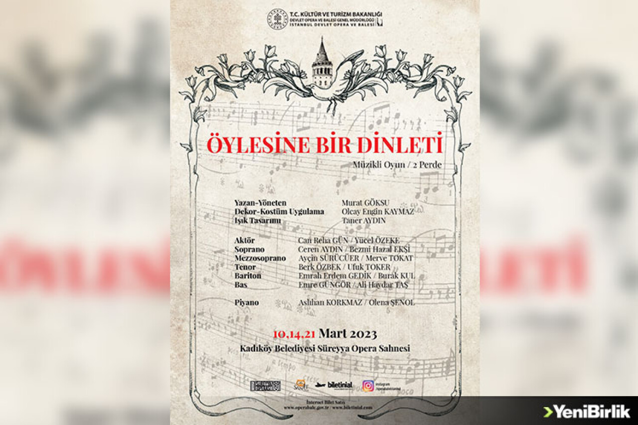 İstanbul Devlet Opera ve Balesi'nin sahneleyeceği müzikli oyun "Öylesine Bir Dinleti" 10 Mart 2023'de İstanbul prömiyerini yapıyor.
