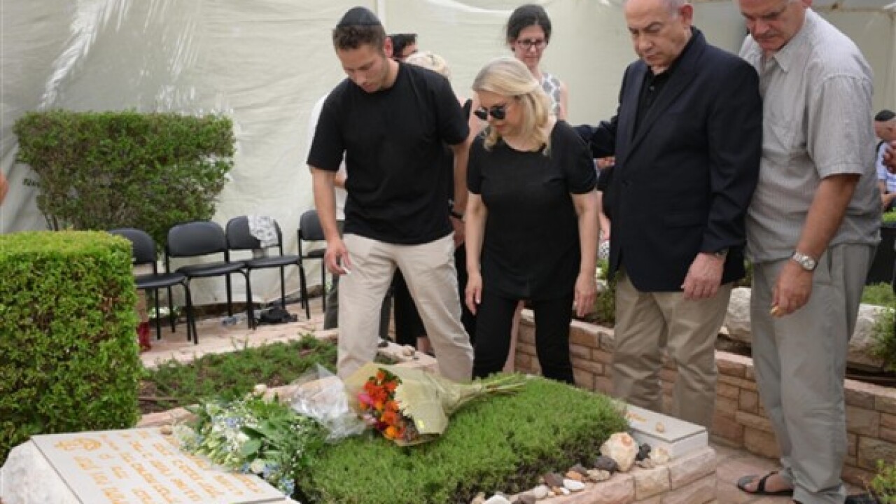 Başbakan Netanyahu ve kardeşi Ido, savaşta hayatını kaybeden büyük kardeşleri Yoni'nin mezarı başında anma çelengi bıraktı.