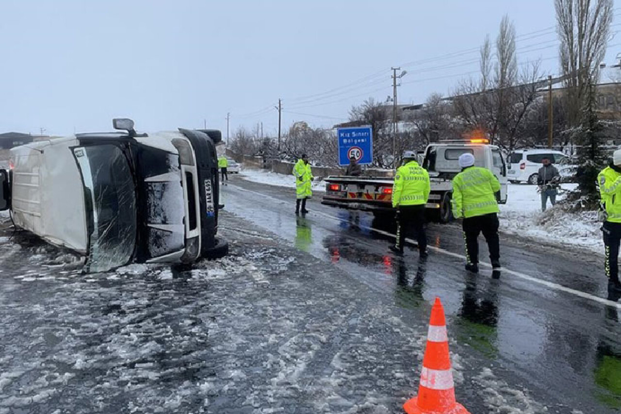 Acıgöl ilçesinden Kavak beldesindeki patates deposuna işçi taşıyan H.A. idaresindeki 50 AR 695 plakalı minibüs, yağış nedeniyle kayganlaşan Acıgöl-Nevşehir kara yolunda karşı şeride geçerek devrildi.