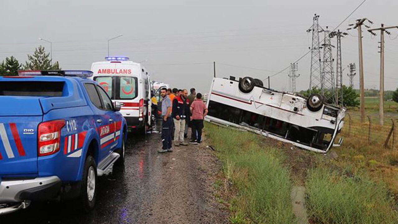 Çarpışmanın etkisiyle tur midibüsü devrildi.