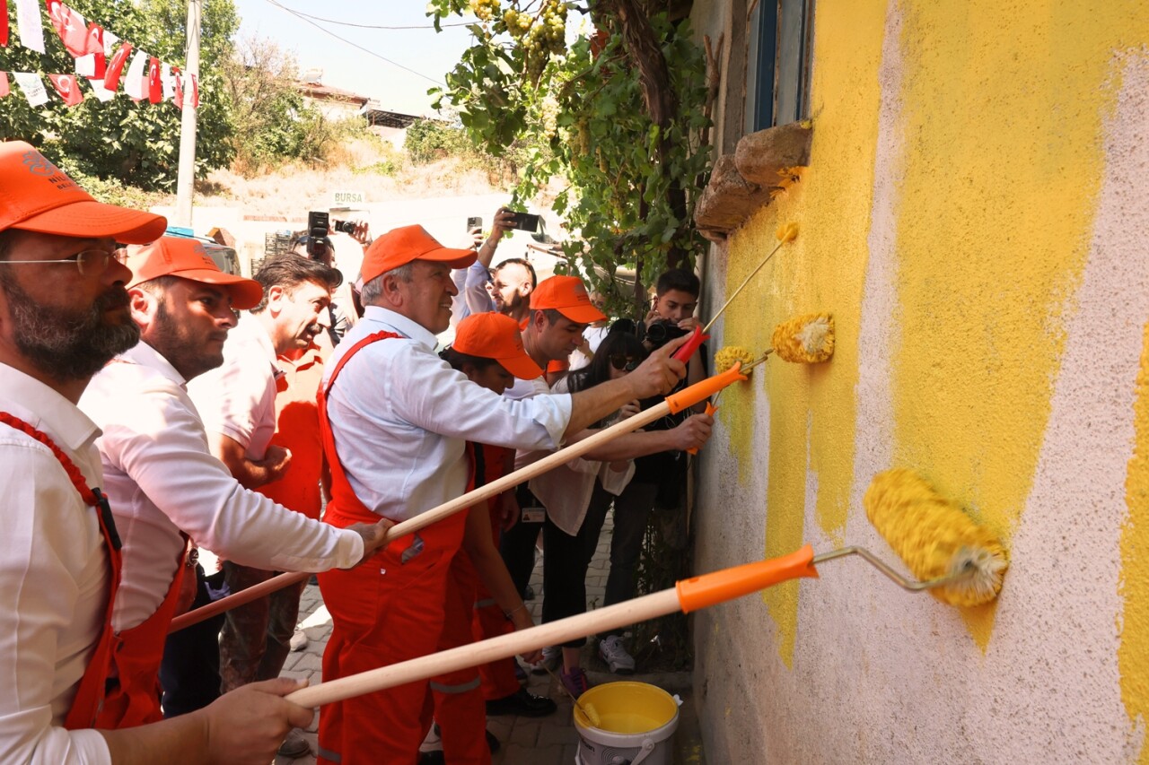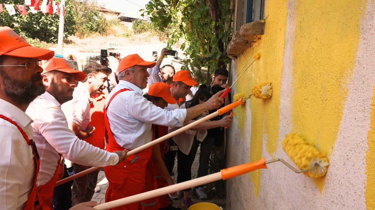 Konuşmanın ardından başta Nilüfer Belediye Başkanı Şadi Özdemir dahil olmak üzere katılımcılar tulumlarını giyerek, mahalledeki evleri boyamaya başladı.