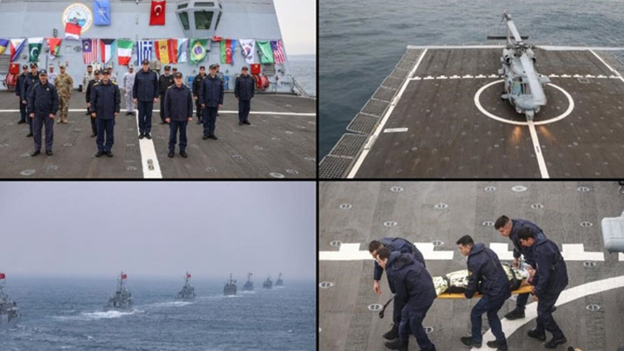 Tatbikat, imha sırasında yaralanan personelin helikopterle sevk edilmesi ve tören geçişinin ardından sona erdi.