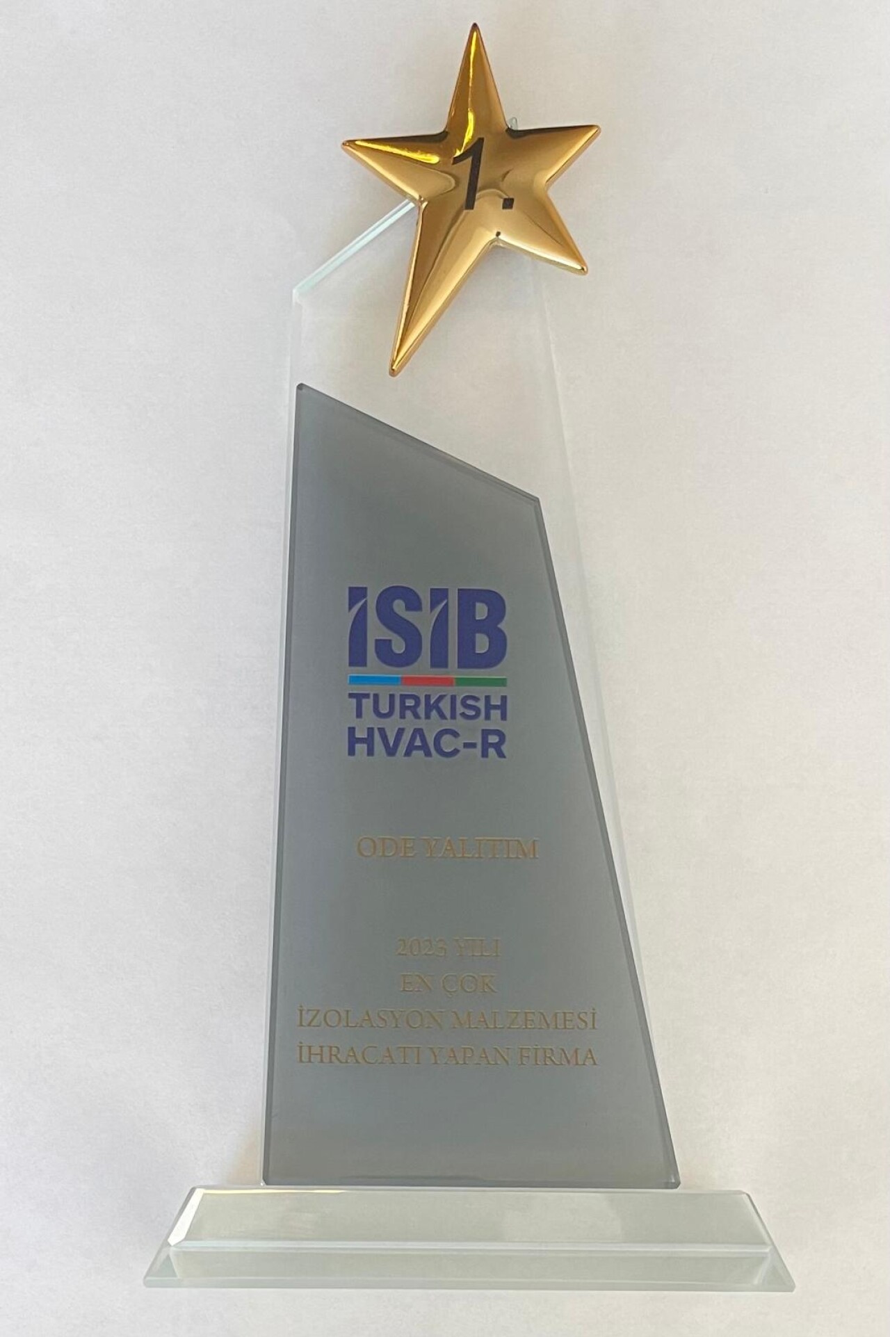 Türkiye'nin yüzde 100 yerli sermayeli en büyük yalıtım şirketi ODE Yalıtım, İklimlendirme Sanayi İhracatçıları Birliği'nin (İSİB) ihracat pazarında etkili rol üstlenen ve en çok ihracat gerçekleştiren firmaları ödüllendirdiği 2023 Yılı İhracatın Liderleri Ödül Töreni'nde “yalıtım malzemeleri ihracatı” kategorisinde birincilik ödülünü kazandı. Törende, ODE Yalıtım Yönetim Kurulu Üyesi Erhan Özdemir'e ödülü, İSİB Yönetim Kurulu Başkanı Mehmet Hakkı Şanal takdim etti.