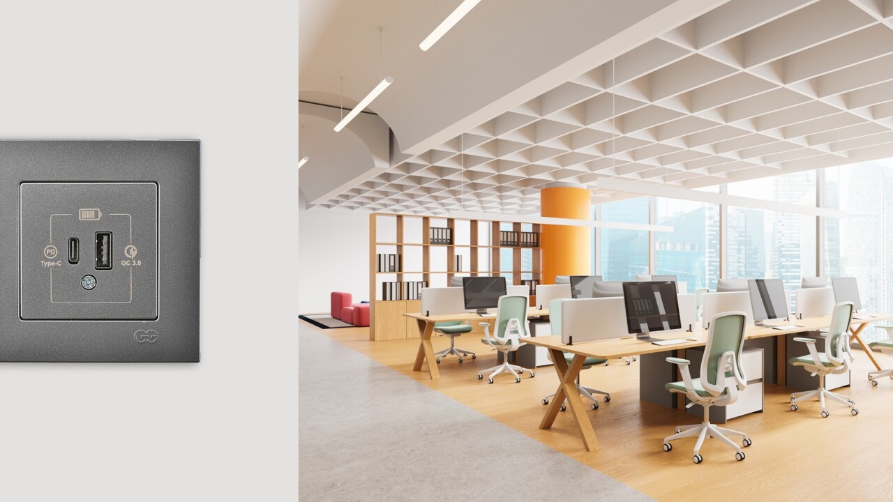 Günsan Elektrik’in USB + Type C çıkışlı, üçlü çocuk korumalı topraklı anahtarlı grup prizi, ofis ve çalışma alanlarınızda kolaylık ve güvenliği bir araya getiriyor. Bilgisayar, telefon ve diğer cihazlarınızı aynı anda şarj etmeye imkan sağlayan ürün, çocuk koruma özelliği ile güvenliği ön planda tutuyor.