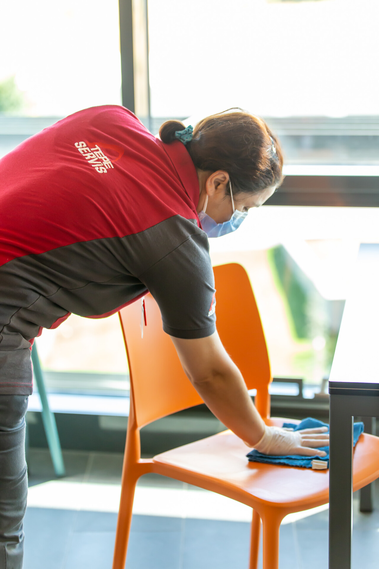 Teknolojik çözümlerin temizlik standartlarının uygulanmasında önemli bir rol oynadığına değinen Tepe Servis Tesis Yönetimi Bölge Müdürü Tarık Merdanoğlu, “Zemin temizliğinde profesyonel zemin yıkama makineleri kullanarak yüzeydeki kirin farklı alanlara yayılmasını engelliyoruz. Bu yöntemle iş gücünden de tasarruf sağlıyoruz. Ayrıca, buhar gücüyle temizlik yapan cihazlar kullanarak yüzeylerdeki kir, mikrop ve virüsleri etkili bir şekilde dezenfekte ediyoruz. Böylece alanları en hijyenik şekilde temizliyoruz” diye konuştu.