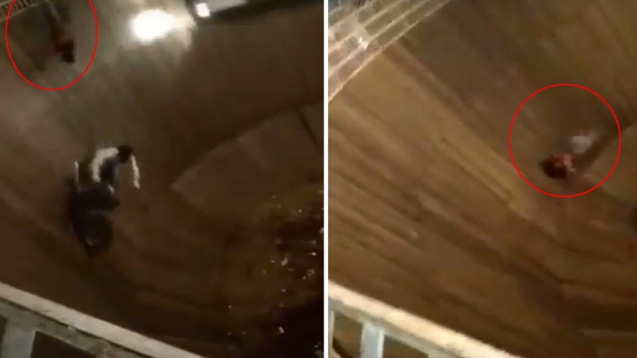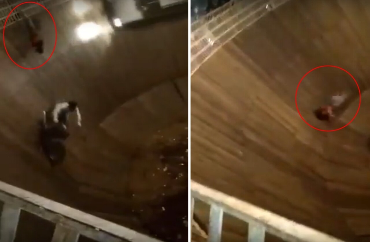 Görüntüler Hindistan’ın Kalyan kentinden. ‘Ölüm Duvarı’ olarak adlandırılan performans parkurunda ayağı korkuluklara takılarak asılı kalan kadına, otomobil böyle çarptı. Kadın daha sonra zemine düştü. Talihsiz adrenalin bağımlısı olay yerinde hayatını kaybetti.'Ölüm Duvarı' yine korkunç bir ölüme sahne oldu. Görüntüler Hindistan'ın Kalyan kentinden...