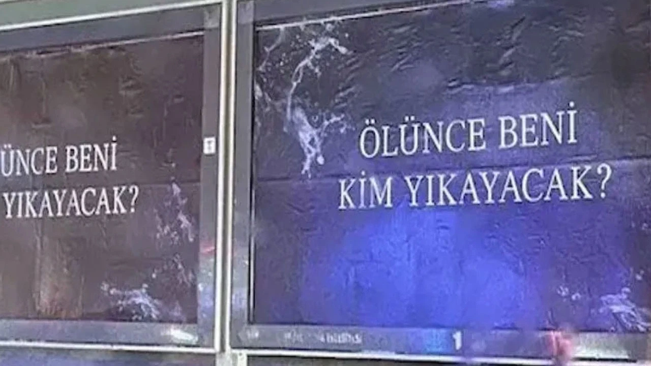 Ankara, İstanbul, İzmir başta olmak üzere çok sayıda kentin işlek noktalarındaki reklam panolarına "Ölünce beni kim yıkayacak?" afişi asıldı.
