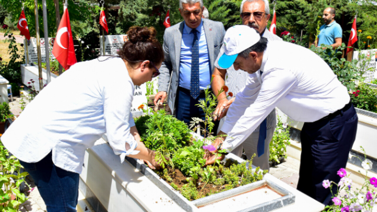 Malatya Şehir Mezarlığı'nda bulunan Malatya Şehitliği’ndeki şehitlerin kabirlerini aileleri ve belediye personelleri çiçeklendirdi.