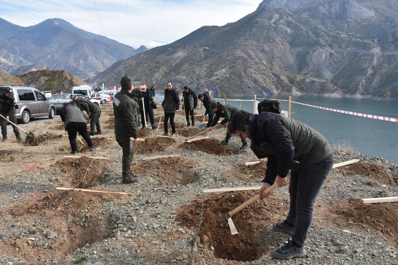 Artvin Orman Bölge Müdürlüğünce Deriner Baraj Gölü havzasındaki Hamamlı mevkisinde düzenlenen programda 1000 fidan toprakla buluşturuldu.