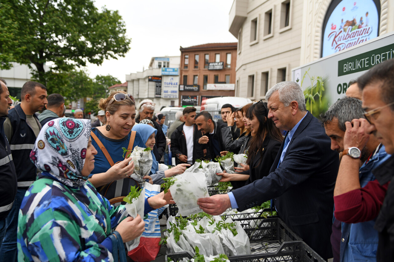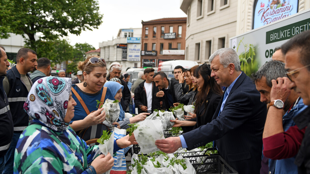 Fidelerden alabilmek için Fomara Meydanı’nda uzun kuyruklar oluşturan vatandaşlar, sadece çiftçilerin değil halkın da bahçe ve balkonlarında tarımsal üretim yapmalarına aracılık ettiği için Osmangazi Belediye Başkanı Erkan Aydın’a teşekkürlerini sundu.