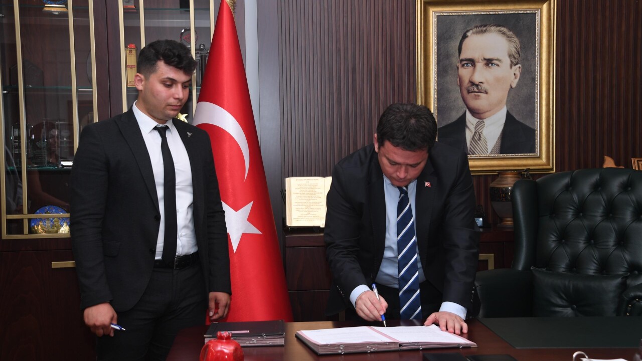Osmangazi Belediyesi bünyesinde görev yapan memur ve sözleşmeli memurların haklarında iyileştirme yapılmasını öngören Sosyal Denge Tazminatı Sözleşmesi, Osmangazi Belediye Başkanı Erkan Aydın ve Tüm Yerel- Sen Bursa Şube Başkanı Fatih Eren arasında imzalandı.