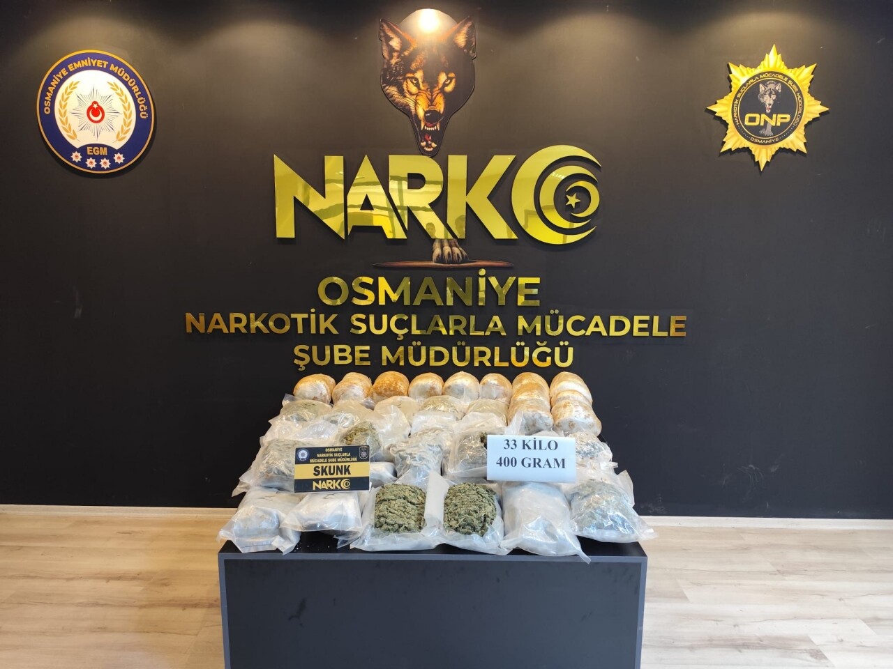 Narkotik detektör köpeği yardımıyla yapılan aramada, aracın bagajında 33 kilo 400 gram sentetik uyuşturucu ele geçirildi, 2 şüpheli gözaltına alındı.