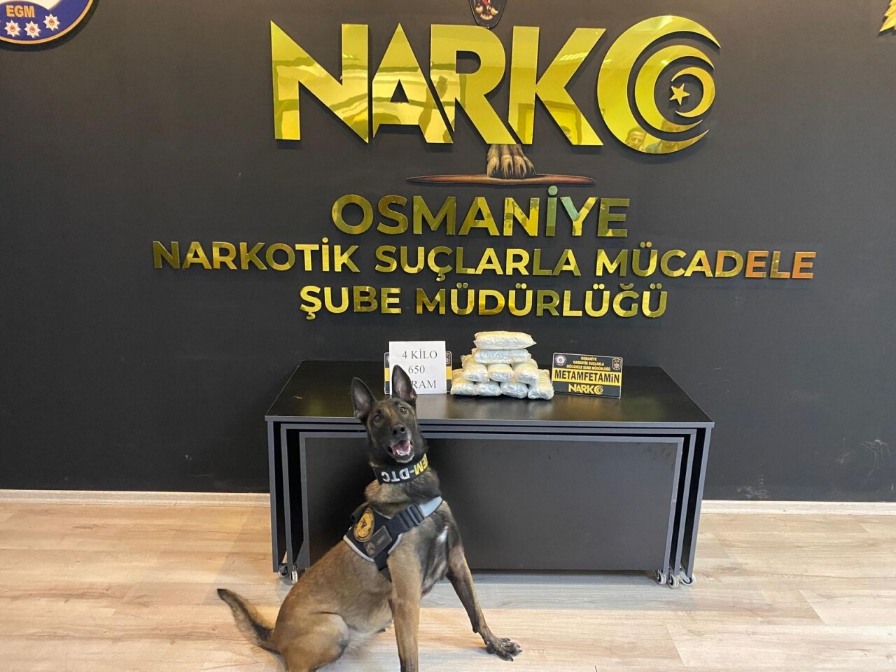 Narkotik detektör köpeği yardımıyla yapılan aramada, aracın motor kısmına gizlenmiş 4 kilo 650 gram sentetik uyuşturucu ele geçirildi, sürücü gözaltına alındı.
