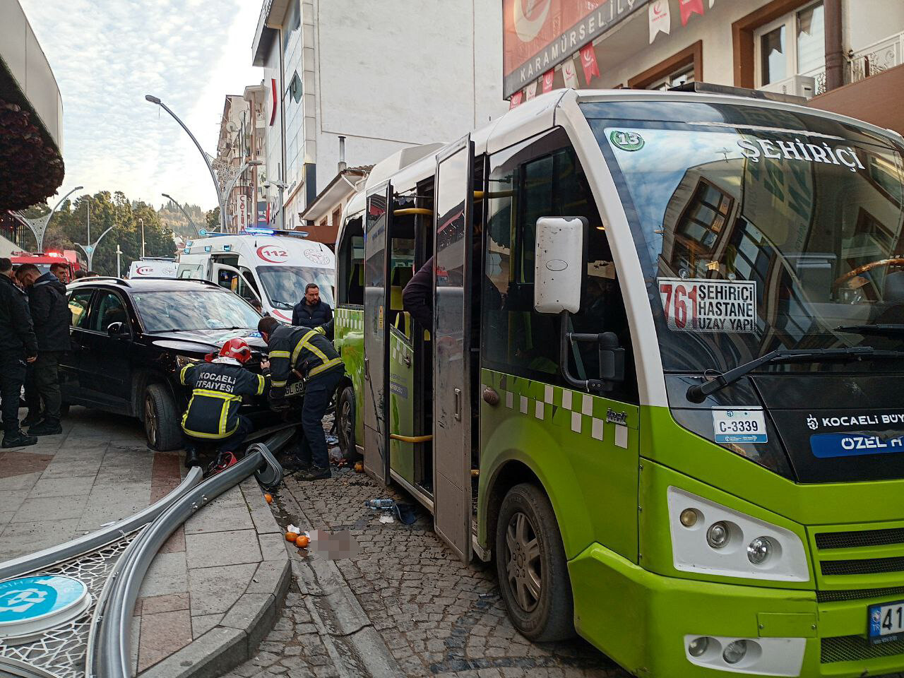 Cumhuriyet Caddesi'nde dün, M.U. (79) idaresindeki 34 GL 6841 plakalı cip kontrolden çıkarak otobüs durağında bekleyenlere çarpmış, hızını alamayan araç önce aydınlatma direğine sonra 41 M 8044 plakalı yolcu minibüsüne çarparak durabilmişti.