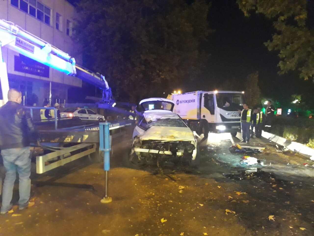 Kazanın gürültüsüyle sarsılan bulvar üzerinde uygulama görevindeki polis ekipleri, hemen aracın yanına koşarak yaralılara yardım etti. Kısa süre sonra bölgeye 112 Acil Servis ekipleri ile itfaiye ekipleri geldi. Kendi imkanlarıyla aracın içinden çıkan şahıslara ilk müdahalede bulunan sağlık ekipleri, daha sonra yaralıları tedavi edilmek üzere ambulanslarla hastaneye kaldırdı. İtfaiye erleri, yakıt ve yağ sızdıran otomobilin akümülatörünün kutup başlarını söktü. Kazanın etkisiyle Atatürk Bulvarı bir süreliğine tek taraflı olarak araç trafiğine kapandı. Hurda yığınına dönen otomobil, çekici yardımıyla otoparka kaldırıldı.