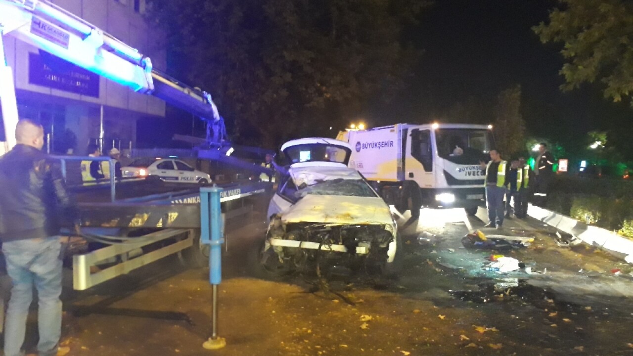 Kaza, saat 05.00 sıralarında Altındağ’da meydana geldi. Edinilen bilgilere göre; Atatürk Bulvarı üzerinde Sıhhıye’den Ulus istikametinde seyreden 06 ZAV 83 plakalı otomobil, Türk Hava Kurumu Genel Müdürlüğü önünde sürücüsü Kerim A.’nın direksiyon hakimiyetini kaybetmesi sonucu refüje çarptı. Yaklaşık 10 metre sürüklenen otomobil, takla atıp durdu. Kazanın etkisiyle araçta bulunan yolculardan 1’i kadın 3 kişi yaralandı. Hurda yığınına dönen otomobilin hız ibresinin 100 kilometrede kaldığı görüldü.