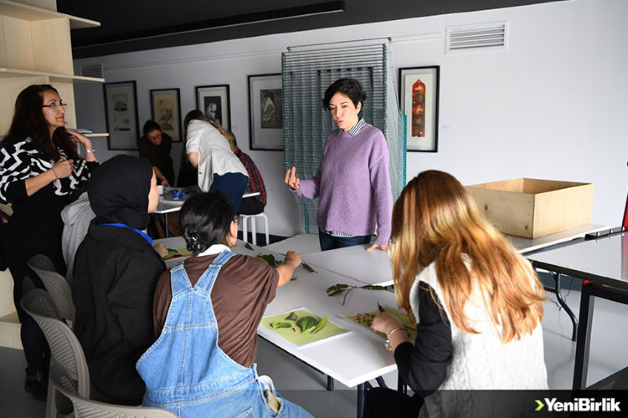 Cyanotype tekniğinin fotoğraf baskı tekniğine benzediğini söyleyen Yeşim Paktin, "Bu teknik, 1840'larda bir İngiliz bilim insanı tarafından bulunmuş. Demir tuzlarından yapılan iki çözeltinin karıştırılmasıyla bir solüsyon elde ediliyor. Kağıtlara sürülen bu solüsyon, güneş ve UV ışığına karşı duyarlı. Biz de bu baskı tekniğinde solüsyon sürülmüş kağıdın üzerine istediğimiz şekildeki desenleri yerleştirerek bir kompozisyon yaratıyoruz. Sonra UV ışığıyla kağıdımızı pozluyoruz. Ardından güneş gören yerler mavi renge dönüşüyor, görmeyen yerler ise yıkadığımız zaman beyaz oluyor. Bu baskı yönetimi 1850'lerde fotokopi yöntemiymiş. Bazı mimari projelerde de kullanılmış" diyerek teorik bilgileri gençlere aktardı. Galeri Beylikdüzü'nde gerçekleşen Özgün Baskı Atölyesi, usta sanatçıların da katılımıyla atölye çalışmaları ve sanatsal uygulamalara dair pratikleri sanatseverlerle buluşturmaya devam edecek.