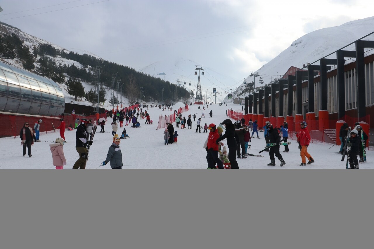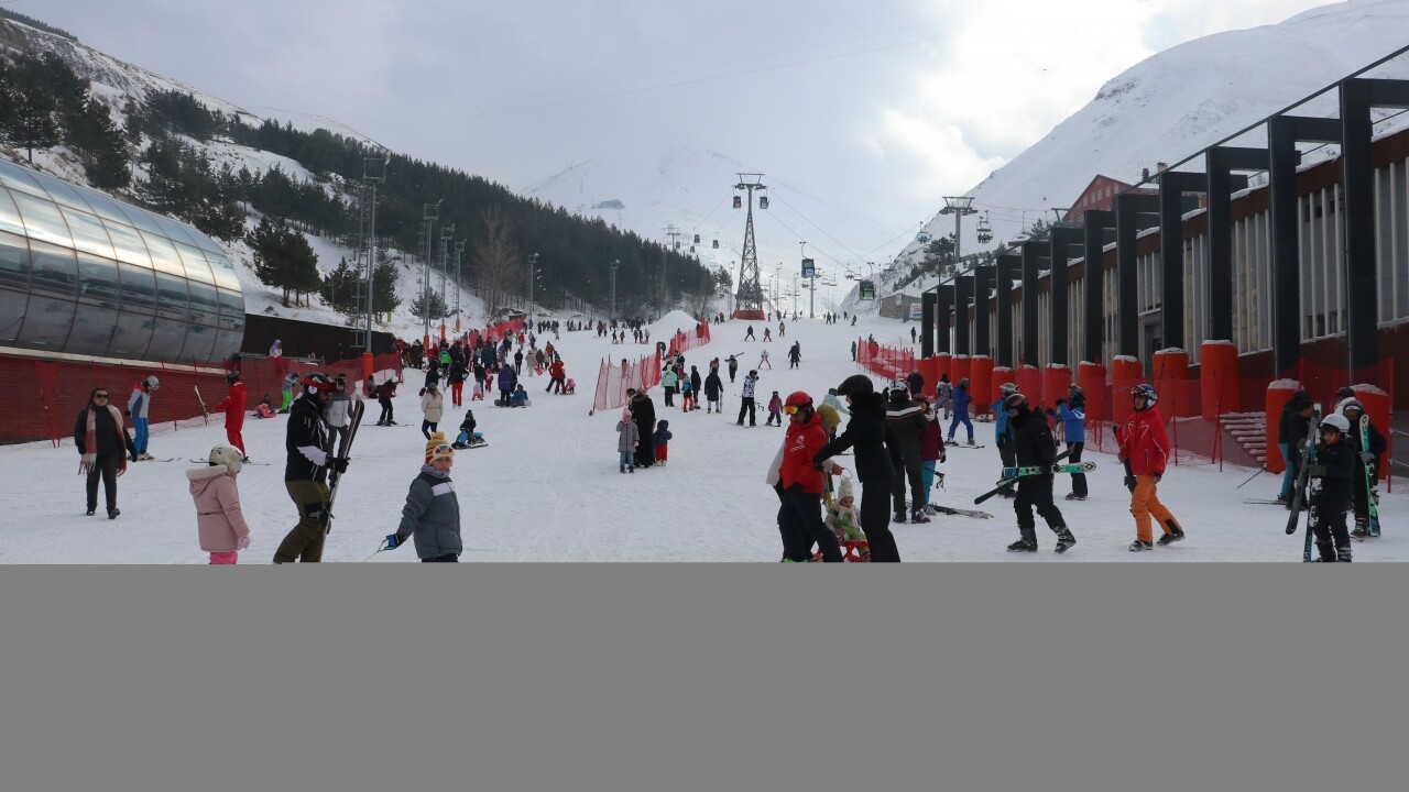 Hafta sonu tatilini Palandöken'de geçiren aileler çocuklarıyla kızağa bindi, yerli ve yabancı turistler kayak ile snowboard yaparak eğlenceli vakit geçirdi.