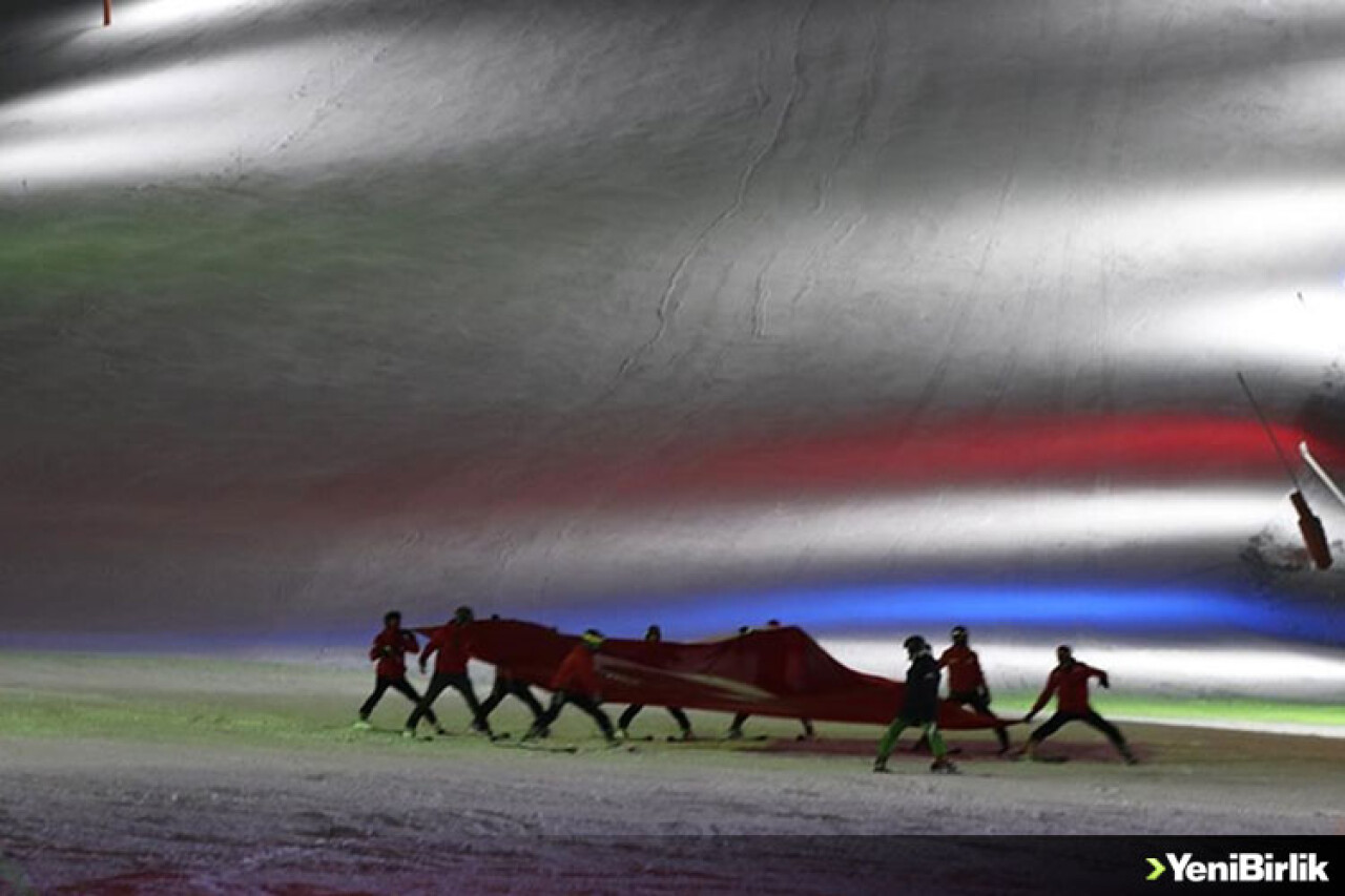 Erzurum Büyükşehir Belediyesince kayak merkezinde düzenlenen sezon açılışı etkinliğinde, Ejder 3200 Arama Kurtarma ekibi ve sporcular kayaklarla zirveden dev Türk bayrağı taşıyarak iniş yaptı.