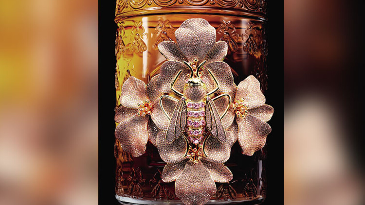 Mistik Doğu kültürü ile modern zarafeti iç içe geçiren eşsiz tasarımların yaratıcısı Begüm Khan'ın, Guerlain ile iş birliği sonucunda ortaya sadece 15 adet üretilen ve her birine el işçiliğiyle 6.500 adet değerli kristalin işlendiği sıra dışı mücevher bir parfüm şişesi çıktı.