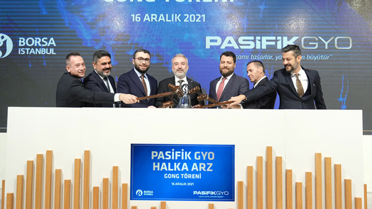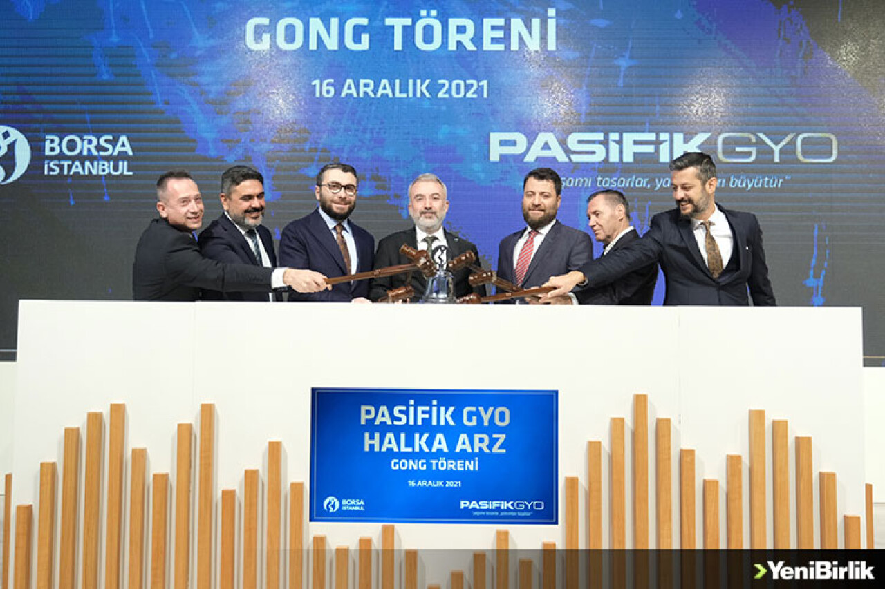 Şehrin mimari dokusunda fark yaratan projelere imza atan ve Ankara'da gerçekleştirdiği projelerin ardından İstanbul'a iddialı bir giriş yapan Pasifik Gayrimenkul Yatırım Ortaklığı (PSGYO), bugün (16 Aralık 2021, Perşembe) gerçekleştirilen gong töreni sonrasında Borsa İstanbul'da işlem görmeye başladı. Pasifik GYO'nun Gong Töreni'ne, Borsa İstanbul A.Ş. Genel Müdürü Korkmaz Ergun, Pasifik Gayrimenkul Yatırım Ortaklığı Yönetim Kurulu Başkanı Fatih Erdoğan ve Tera Yatırım Menkul Değerler Yönetim Kurulu Başkan Vekili Emre Tezmen ve iş dünyasından çok sayıda davetli katıldı.