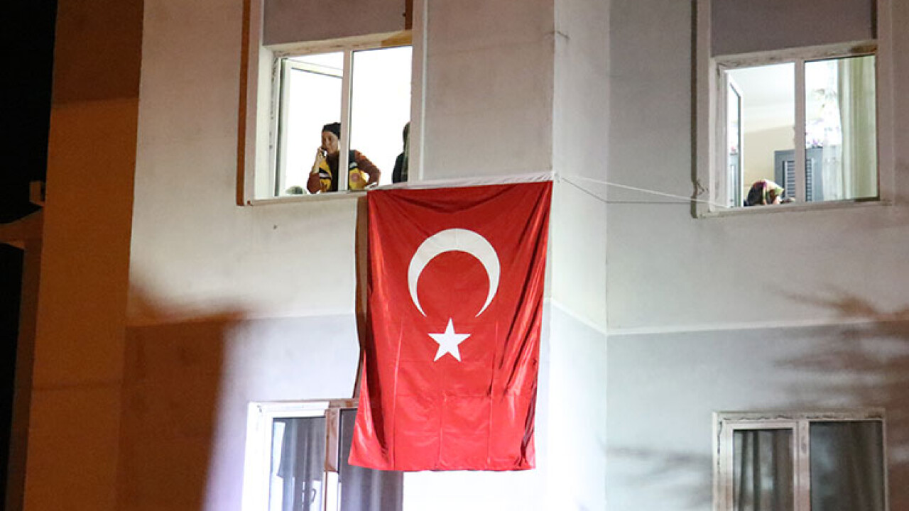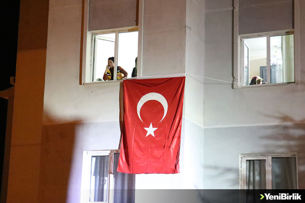 Ailenin evine görevliler tarafından Türk bayrağı asıldı.