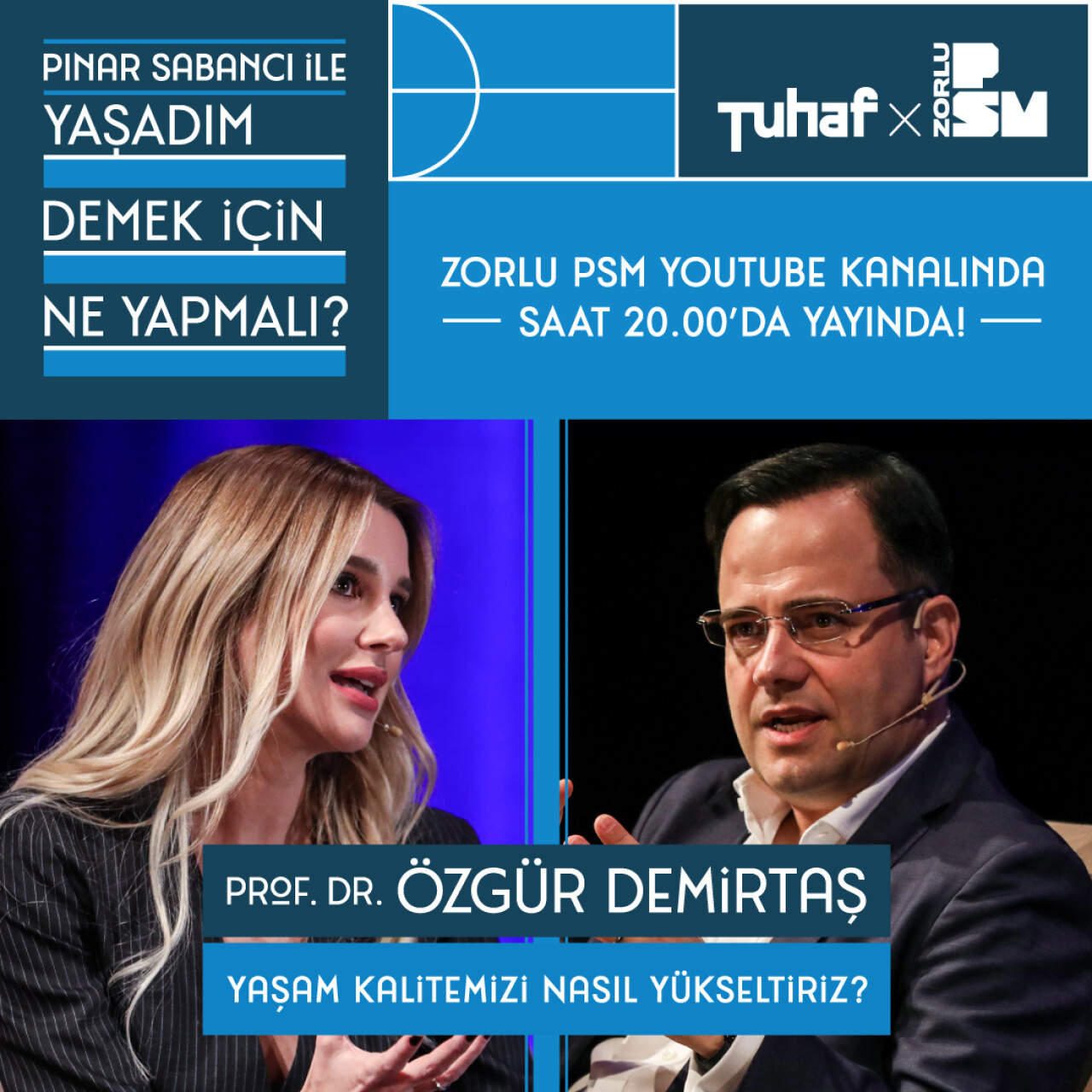 “Yaşam Kalitemizi Nasıl Artırırız?’ sorusuna Zorlu PSM Turkcell Platinum Sahnesi’nde cevap arayan Pınar Sabancı’nın sevilen programının Zorlu PSM YouTube kanalındaki ilk konuğu ise Prof. Dr. Özgür Demirtaş oldu. Özgür Demirtaş, mutluluk, evlilik, ekonomi ve kariyer gibi daha birçok konuyla ilgili samimi açıklamalar yaptı.