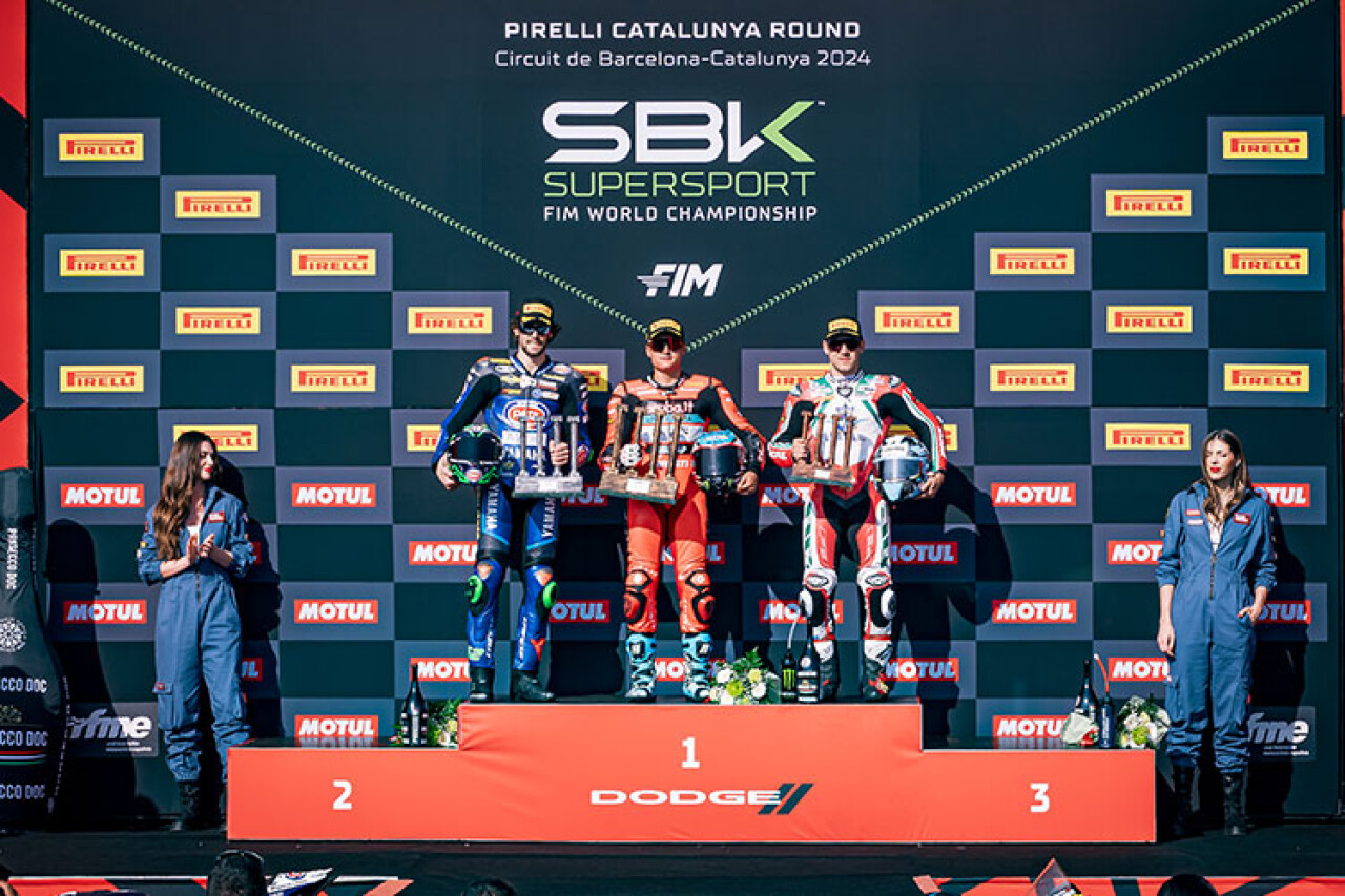 FIM Dünya Superbike Şampiyonası'nın Avrupa’daki ilk durağı olan Katalan etabının 1. Yarışında, Nicolò Bulega (Ducati) finiş çizgisine sadece birkaç dönemeç kalana dek tek başına sürdürdüğü mücadeleyi Toprak Razgatlıoğlu'na kaybetti. İki pilot yarışa farklı lastik seçimleriyle başladı. Türk pilot önde SC2 ve arkada SCX lastikleri seçerken İtalyan pilotun tercihi önde SC1 ve arkada SCX-A (C0900 spesifikasyonlu geliştirme lastiği) oldu. Takım arkadaşıyla aynı lastik kombinasyonunu seçen Álvaro Bautista (Ducati), finişe birkaç dönemeç kala Andrea Iannone'yi (Ducati) geride bırakarak podyumda üçüncülüğü almayı başardı.