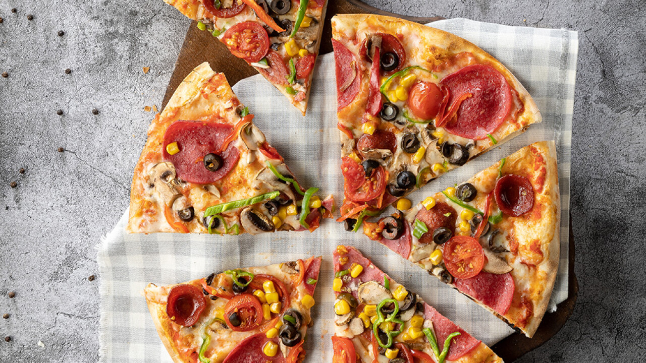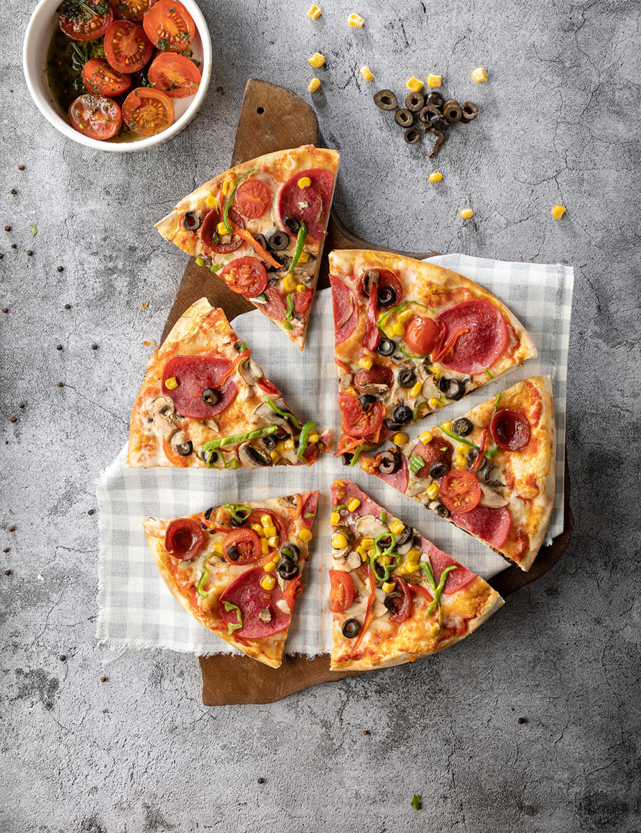 de sucuk, salam, sosis gibi tatları alabileceğiniz vegan pizzalar sunuyor.