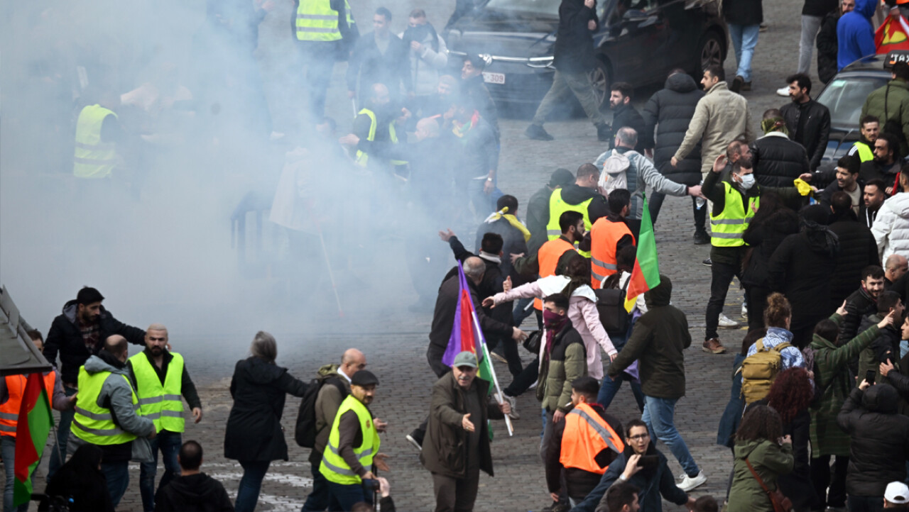 Önce Türkiye'nin Brüksel Büyükelçiliği'nin bulunduğu caddeye, ardından Avrupa Birliği (AB) kurumlarının bulunduğu Schuman Meydanı'na doğru yürümek isteyen söz konusu kalabalık, polis engeliyle karşılaştı.