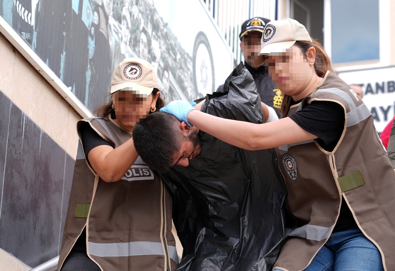 İstanbul Ümraniye'de polis memuru Şeyda Yılmaz'ı şehit eden Yunus Emre Geçti, çöp poşeti giydirilmiş halde hayvan taşıma aracıyla adliyeye getirildi. 19 yaşındaki katil zanlısına kadın polisler eşlik etti.
