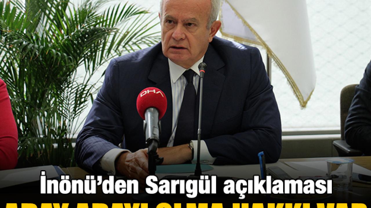 Şişli Belediye Başkanı Hayri İnönü, Şişli Belediyesi'ne tekrar aday olacağı iddia edilen Mustafa Sarıgül için,”Belediye başkanlığına aday adayı olma hakkı var. Mustafa Bey de isterse demokratik hakkını kullanacak” açıklamasını yaptı
