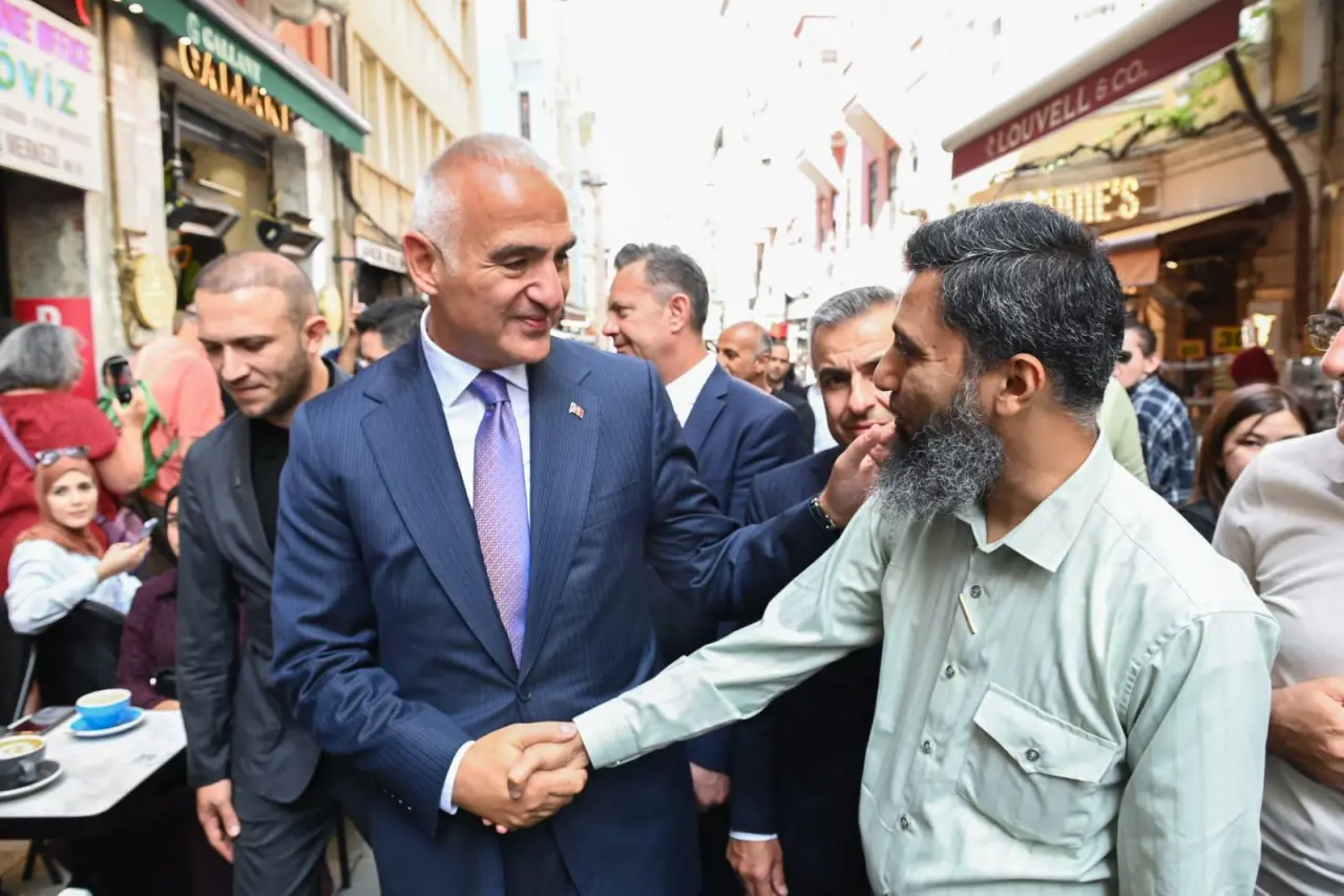 Spotify Music Forward Konferansı’nın ardından Galata Büyük Hendek Caddesi’nde yürüyüş yapan Ersoy, esnafı ziyaret ederek “hayırlı işler” diledi. Kadın emeğinin sergilendiği pazarda el yapımı ürünleri inceleyen Bakan Ersoy, kadınlarla sohbet etti. Ayrıca Cumartesi günü başlayacak Kültür Yolu Festivali’ne turistleri davet etti.