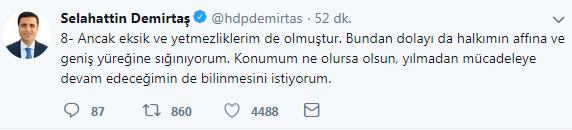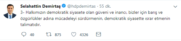 Selahattin Demirtaş'ın twitter üzerinden yaptığı açıklamalar şu şekilde;