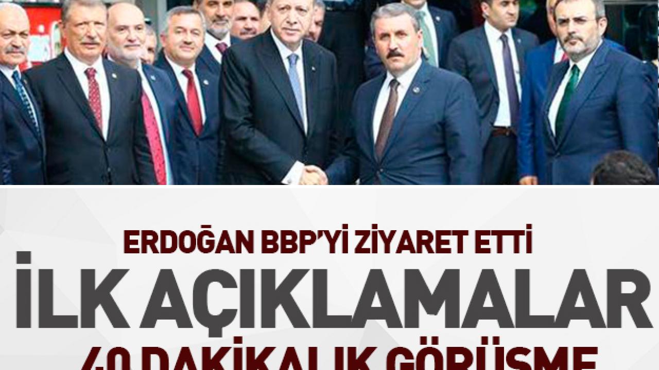 Cumhurbaşkanı Erdoğan’ı parti binası önünde BBP Genel Başkanı Mustafa Destici ve parti yetkilileri karşıladı. Erdoğan, AK Parti Sözcüsü Mahir Ünal ile birlikte geldiği BBP Genel Merkezi'nde parti yöneticileri tarafından alkışlarla karşılandı.