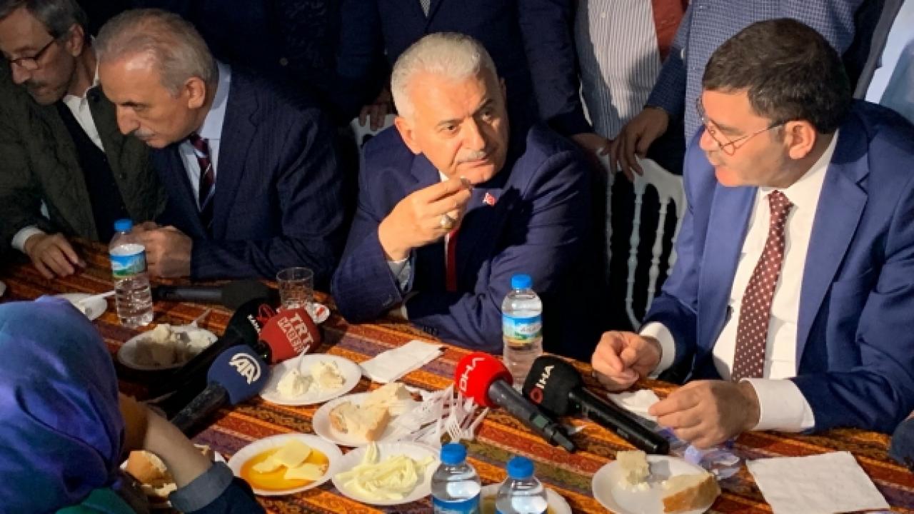 Yıldırım, "Kardeşlerim bir seçim geçirdik. 31 Mart'ta bir şey anlamadık. Çalıştık, çabaladık oylar sandıkta hiç edildi. Sahip çıkamadıysak hırsızın günahı yok mu? Sandıklara sahip çıkmamız gerekli o halde. 23'ünde sandıklara sahip çıkıyor muyuz? Bu işin hesabını 23'ünde Ümraniye soracak mı?" diye sordu. 31 Mart için Ümraniyelilere teşekkür eden Yıldırım, "Bana da destek verdiniz, sağolun. İsmet Başkanı da seçtiniz ama biraz eksik oldu. Şimdi o eksiği tamamlayacağız. Biraz da fazla olsun ki, işi sağlama bağlayalım. O halde hepimize görev düşüyor. Sadece kendimiz değil, herkes bir iki arkadaşıyla konuşup sandığa getirecek. 23 Haziran'da bu işi halledeceğiz. 23 Haziran'da her şey daha güzel olacak. Hak yerini bulacak" dedi. Daha sonra saat 02.30 sıralarında alandan ayrılarak Maltepe'ye geçen Yıldırım, Anadolu Bölge Metro Bakım Atölyesi çalışanlarıyla birlikte sahur yaptı. DHA
