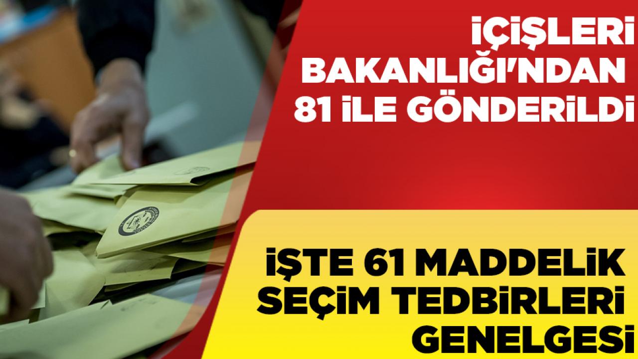 İçişleri Bakanlığı tarafından tüm valiliklere gönderilen genelgede "İçişleri Bakanlığı, Merkez/Taşra Teşkilatı Planlaması", "Oy Verme Günü Alınacak Tedbirler", "Oy Verme Günü ve Sonrasında Alınması Gereken Tedbirler" ve "Diğer Hususlar" konu başlıklarını içeren 61 madde kapsamında “Seçim Tedbirleri Genelgesi” gönderdi.