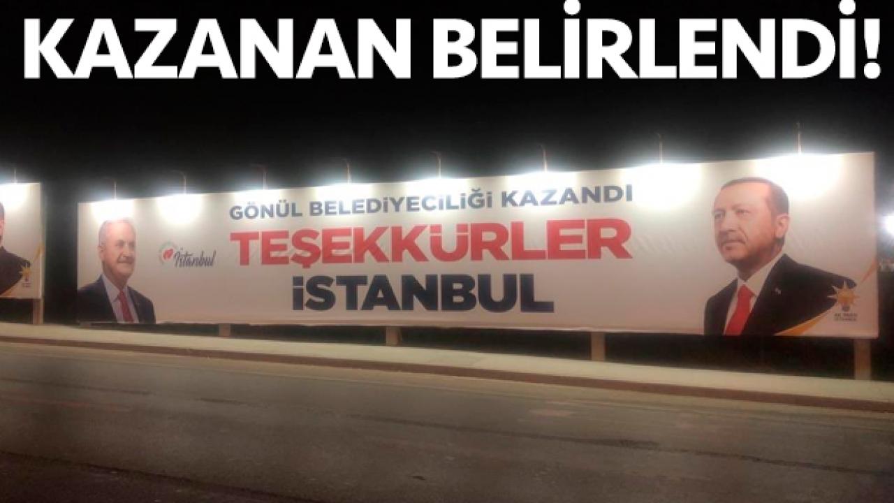 Anadolu Ajansı'nın saatlerce veri girmediği ve oy sayılarında en ufak bir oynama yapmadığı İstanbul'da başkanlık seçimini kazandığını açıklayan AK Parti adayı Binali Yıldırım'ın pankartı şehre asıldı.