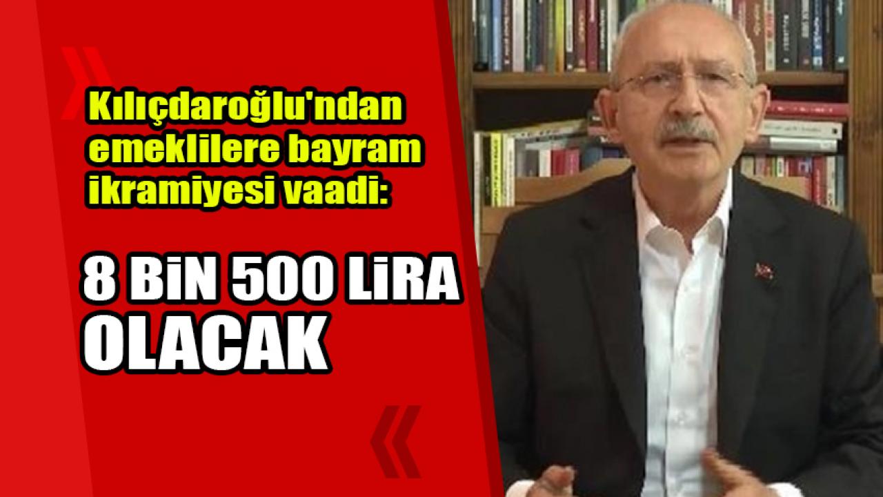 Kılıçdaroğlu, emeklilere verilen bayram ikramiyesine değinerek, "Emekli kardeşlerim; güzel haberim şu, hakkınız olanı alacaksınız. Şu andan itibaren emeklilerin bayram ikramiyesi asgari ücret kadar; yani güncel tutarla 8 bin 500 liradır, unutmayın. Çünkü bu Ramazan Bayramı da buna dahildir, hiç merak etmeyin. İktidara geldikten sonraki Kurban Bayramı'nda 8 bin 500 lira ikramiyenize ilaveten, bu Ramazan Bayramı için oluşan 6 bin 500 liralık fark da ek ödeme olarak hesaplarınıza yatacak. Evet, geriye dönük ödeme yapacağım."