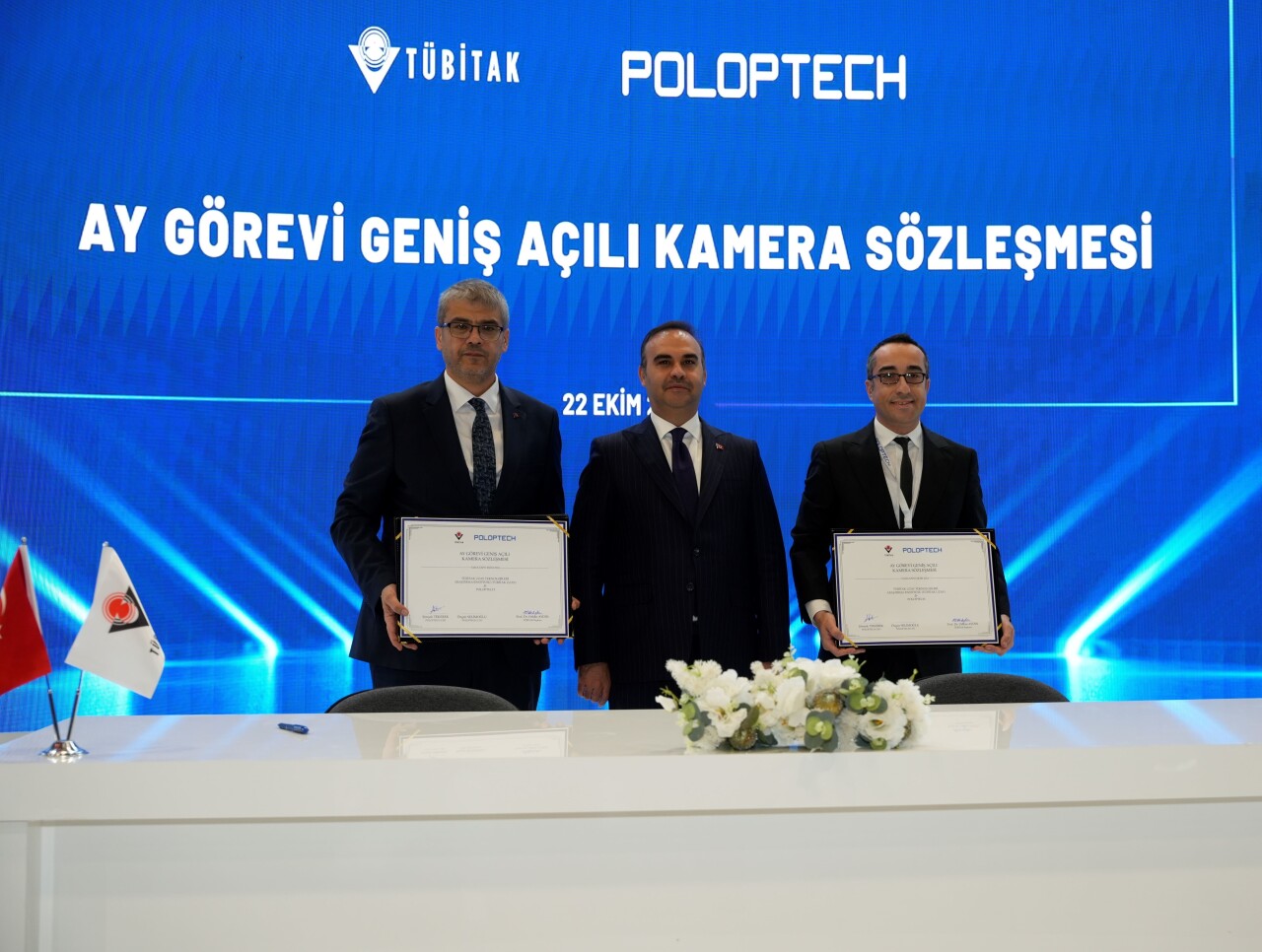 Ay Görevi’nin en önemli bileşenlerinden biri olan geniş açılı kamera sistemi için imzalanan bu sözleşme, SAHA EXPO’da düzenlenen törenle resmiyet kazandı. İmza töreninde, Sanayi ve Teknoloji Bakanı Mehmet Fatih Kacır, Sanayi ve Teknoloji Bakan Yardımcısı Muhammed Kasım Gönüllü, TÜBİTAK Başkanı Prof. Dr. Orhan Aydın, TÜBİTAK Uzay Teknolojileri Araştırma Enstitü Müdürü M. Mehmet Nefes, Poloptech Genel Müdürü Ali Şimşek Tekerek ve Poloptech Teknoloji Direktörü Özgür Selimoğlu ile Polat Holding Sanayi, Teknoloji ve Hizmetler Grup Başkanı Fikret Nas yer aldı.