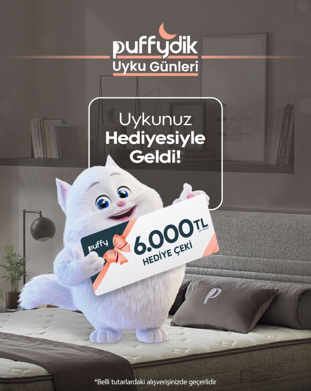 Puffy’dik Uyku Günleri Kampanyası kapsamında kullanıcılar, Puffy mağazalarından yapacakları 50 bin TL ve üzeri tüm alışverişlerinde 6.000 TL’ye varan hediye çeki kazanma fırsatına sahip olacaklar.