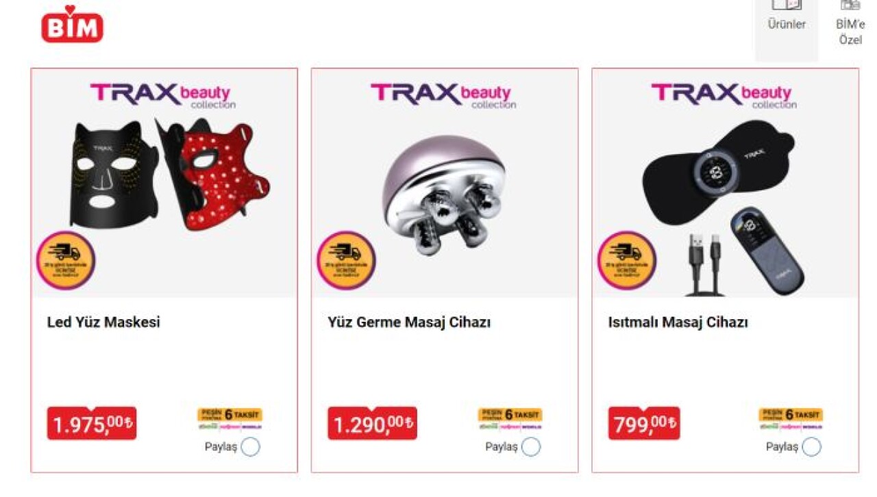 Birçok kişinin merakla beklediği 2 Ekim tarihli BİM kataloğu yayımlandı. BİM kataloğunda bu hafta dikkat çeken ürünler arasında ısıtmalı masaj cihazı 799 TL , yüz germe masaj cihazı 1.290 TL ve led yüz maskesi 1.975 TL fiyat aralığıyla kullanıcının beğenisine sunuluyor. BİM marketlerden satın alınabilecek ürünler aynı zamanda BİM'e ait internet sayfası üzerinden de satışa açık hale geliyor. Ayrıca tüketicilere, ürünlerde 6 taksit seçeneği de ön plana çıkıyor.