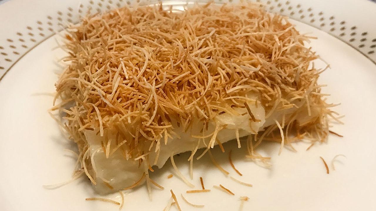 Fırından çıkardığınız kadayıflı tatlıya muhallebiyi dökün ve buzdolabında 1-2 saat kadar dinlendirin.